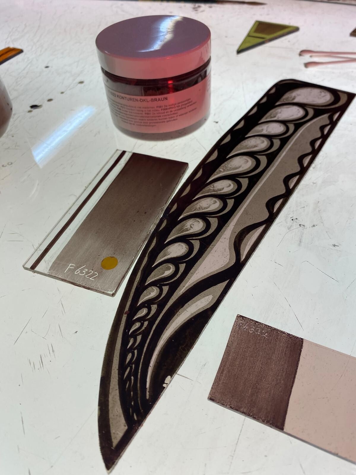 Brandschilderen is een ambacht waarbij glas wordt beschilderd en gebrand. Ik beheers veel verschillende brandschildertechnieken en pas deze toe om gedetailleerde ontwerpen te maken, met oog voor kleur, licht en afwerking.
